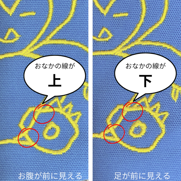 刺繍では物理的に前後がわかってしまいますので、