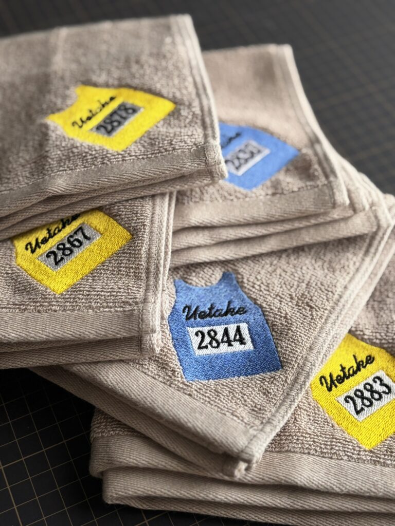 すぐにわかるデザイン、お子さんの名前を出さすともゼッケンナンバーで誰のものかするにわかるところもとてもいいアイディアです!